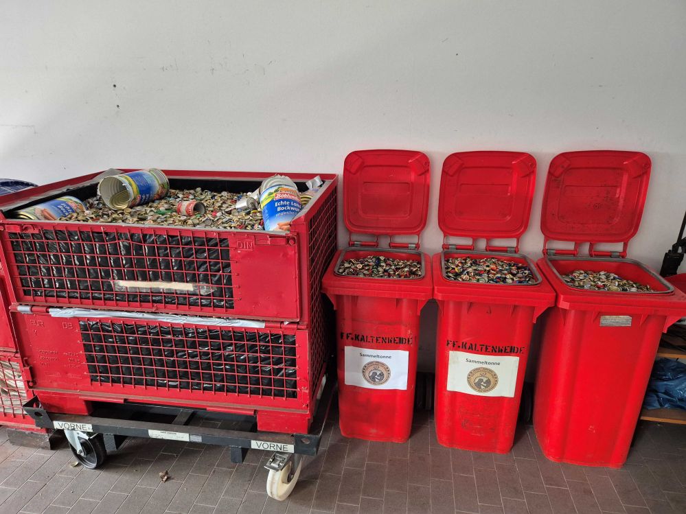 Die Unterstützung der Sammelaktion wurde mit der Zeit immer größer und ging schon bald über die Ortsgrenze Kaltenweides hinaus. Aus allen sechs Ortsfeuerwehren der Stadtfeuerwehr Langenhagen, vielen Vereinen und den Bürgern und Bürgerinnen der Stadt Langenhagen kamen große Kronkorkenspenden nach Kaltenweide. Zusätzliche Unterstützung bekam die Ortsfeuerwehr Kaltenweide in diesem Jahr durch die Stadtverwaltung Langenhagen, hier Federführend die Mitarbeiter und Mitarbeiterinnen vom Haus der Jungend, die eine Sammelsäule für Kronkorken im Rathaus aufgestellt haben. Durch zusätzliche Werbung vom Bürgermeister Mirko Heuer für die Sammelaktion in den Sozialen Medien, konnte innerhalb von sechs Wochen eine mit Kronkorken gefüllte 120 Liter Tonne an die Ortsfeuerwehr Kaltenweide übergeben werden.