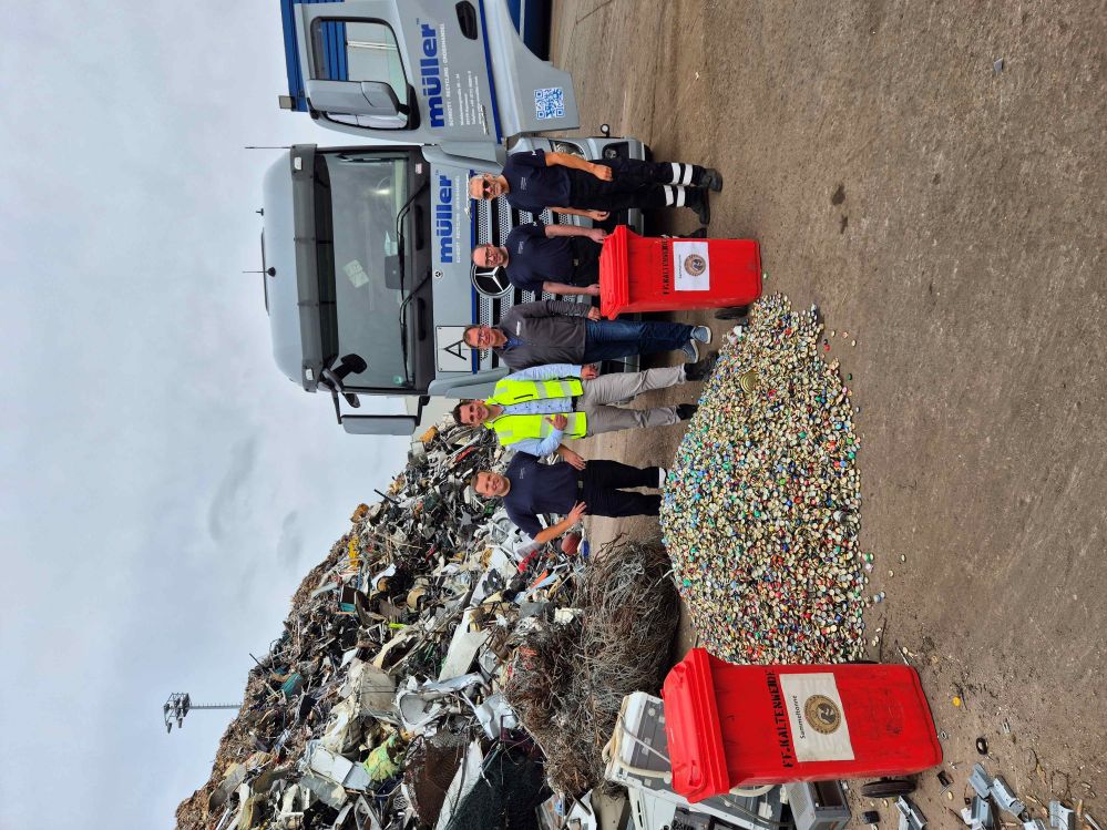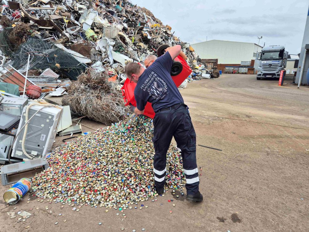 Mittlerweile haben sich seit Januar 2025 drei Sammeltonnen und eine Euro-Gitterbox mit Kronkorken angesammelt. Da diese Mengen zu groß geworden sind um diese zu den Bundeswehrstandorten zu transportieren, musste nach einer neuen Lösung gesucht werden. Innerhalb der letzten zwei Wochen wurde die Firma Otto Müller Recycling GmbH als neuer Kooperationspartner für die Sammelaktion gewonnen. Am 10.09.2025 war es dann soweit, die gesammelten Kronkorken konnten an die Firma Otto Müller übergeben werden. Das Ergebnis konnte sich sehen lassen. Knapp eine halbe Tonne, genauer gesagt 430 kg, wurden vor Ort gewogen. Der daraus gewonnene Erlös wird durch die Firma Otto Müller an das Bundeswehr-Sozialwerk überwiesen. Mit diesem Erlös wird die Ausbildung von Assistenz-/Therapiehunden für Soldaten mit Post-Traumatischen-Belastungsstörungen (PTBS) unterstützt.