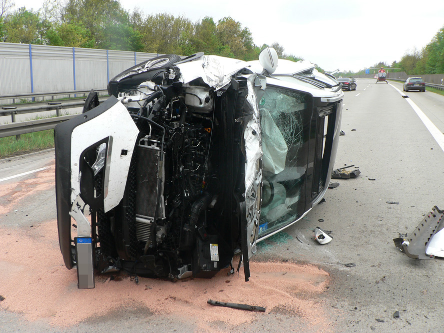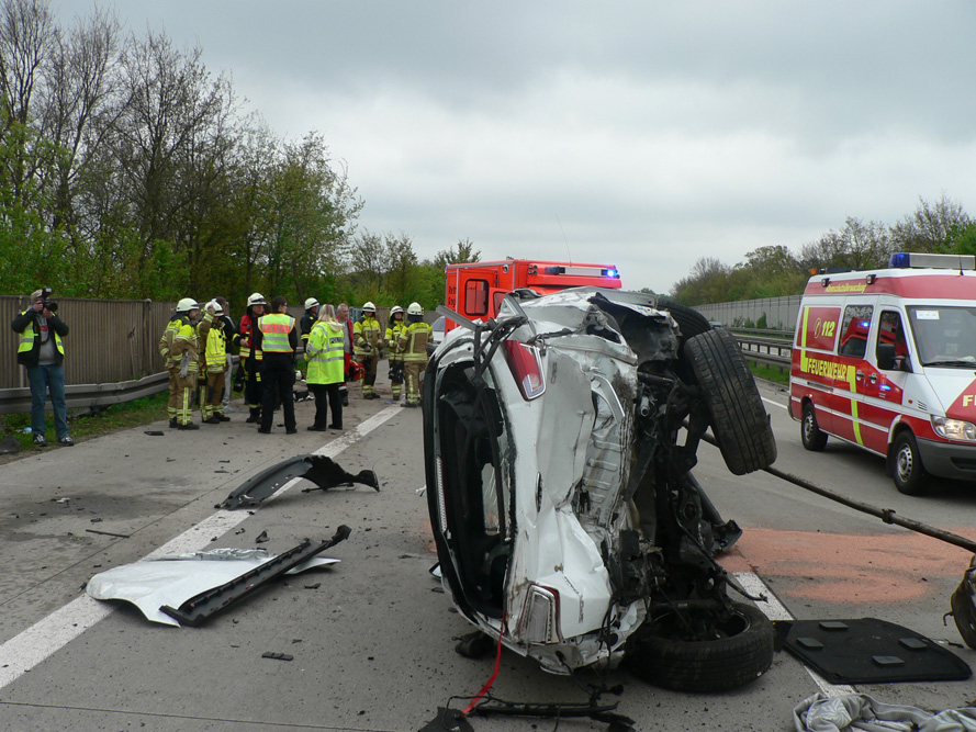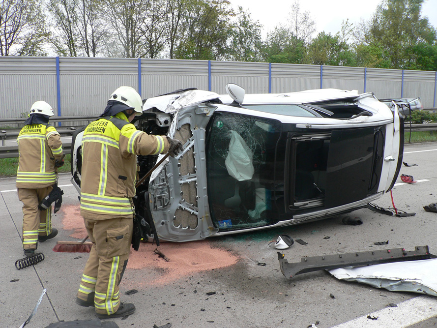 Bei einem Verkehrsunfall auf der BAB 352 in Fahrtrichtung Süden wurden am Samstagnachmittag zwei Verkehrsteilnehmer schwer, einer leicht verletzt. Der Fahrer eines PKW war gezwungen eine Gefahrenbremsung einzuleiten, nachdem ein weiterer PKW unmittelbar vor ihm auf die Spur wechselte. Der PKW geriet dabei auf die rechte Spur und kollidierte dort mit einem KIA. Der KIA überschlug sich in der Folge mehrfach und blieb auf der Seite liegen. Der Fahrer wurde bei dem Unfall aus seinem Fahrzeug geschleudert und erlitt dabei schwere Verletzungen.