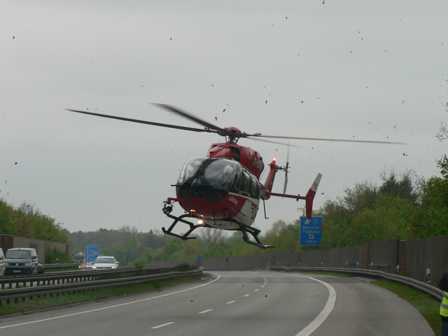 Die Insassen des ausweichenden PKW wurden leicht und schwer verletzt. Beim Eintreffen der Einsatzkräfte befanden sich alle Insassen außerhalb ihrer Fahrzeuge. Eine technische Rettung war somit nicht erforderlich. Eine im Stau wartende Ärztin und weitere Helfer kümmerten sich bereits um die Verletzten. Ein ebenfalls im Stau wartender Veterinärmediziner untersuchte unterdessen einen schwer verletzten Hund. Auf Grund der Schwere der Verletzungen wurde der Hund bereits vor Eintreffen der Feuerwehr von seinen Qualen erlöst. Er wurde anschließend durch die Tierrettung der Ortsfeuerwehr Krähenwinkel in das Tierheim Langenhagen verbracht.