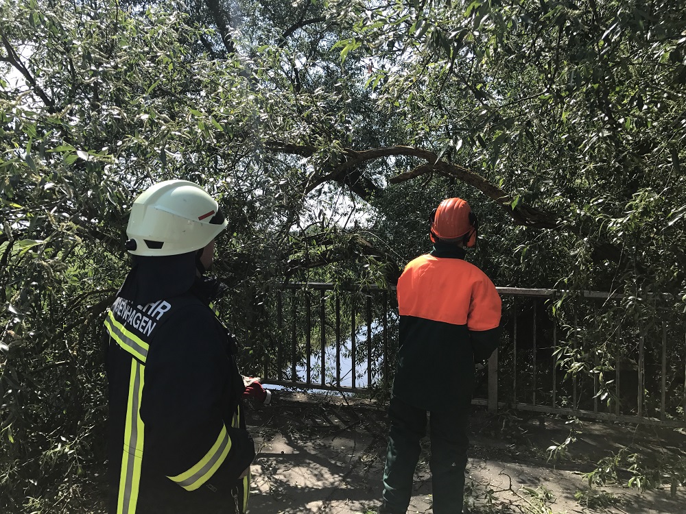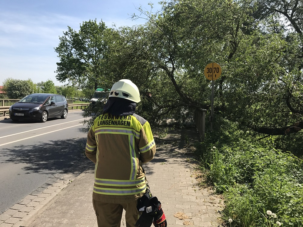 Gemeldet wurde ein umgestürzter Baum auf der gesamten Fahrbahn in Höhe der Brücke über die Wietze. Vor Ort konnte festgestellt werden, dass es sich um einen starken Ast handelt, der den Fuß- und Radweg sowie einen kleinen Teil der Fahrbahn blockierte. Mit der Kettensäge wurde die Gefahrenstelle beseitigt und der Bereich konnte nach kurzer Zeit wieder freigegeben werden. Für die Zeit der Arbeiten wurde die Verkehrsregelung auf dem Reuterdamm durch die Polizei durchgeführt.