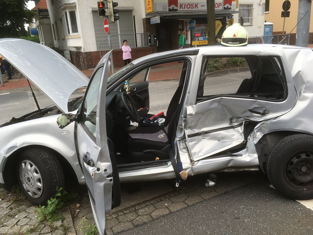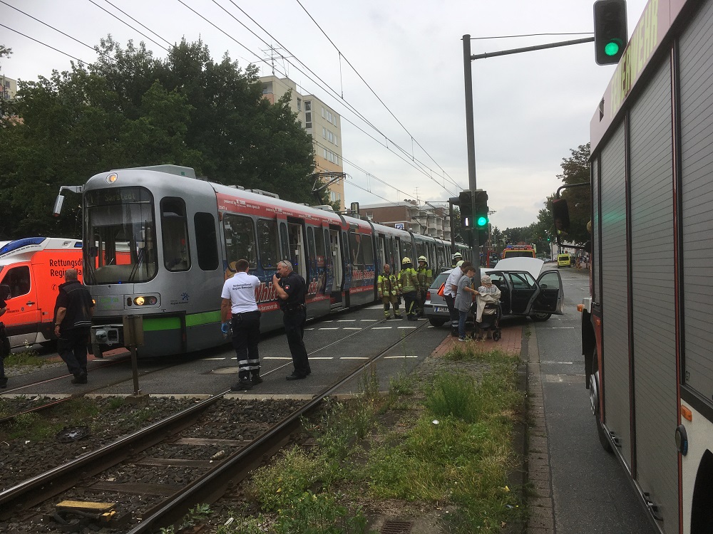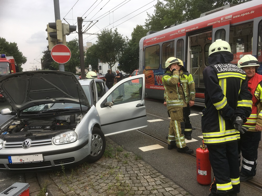 Glück im Unglück hatte am heutigen Donnerstagnachmittag eine 72 jährige Frau auf der Walsroder Straße. Sie war in Fahrtrichtung Innenstadt unterwegs und wollte durch die aktuell aufgebaute Absperrung in die Hindenburgstraße abbiegen. Hierbei kollidierte sie mit ihrem Golf mit einer aus Langenhagen Zentrum kommenden Straßenbahn. Die Ortsfeuerwehr Langenhagen wurde mit dem Stichwort "eingeklemmte Person" alarmiert. Vor Ort konnte Einsatzleiter Marcel Hofmann schnell Entwarnung geben. Die Straßenbahn kollidierte mit dem PKW im hinteren Teil, worauf das Auto in Richtung Laternenmast gedrückt wurde. Eine ältere Dame, die dort gerade mit ihrer Gehhilfe unterwegs war, stürzte vor Schreck. Beide Frauen wurden vom Rettungsdienst versorgt, die PKW Fahrerin ins Krankenhaus transportiert. Hofmann ließ die Batterie abklemmen und den Brandschutz sicherstellen. Insgesamt war er mit vier Fahrzeugen und 15 Kräften vor Ort. Der Bahnverkehr war während der Rettungs-, Unfallaufnahme- sowie Bergungsarbeiten nur bis zum Berliner Platz möglich.