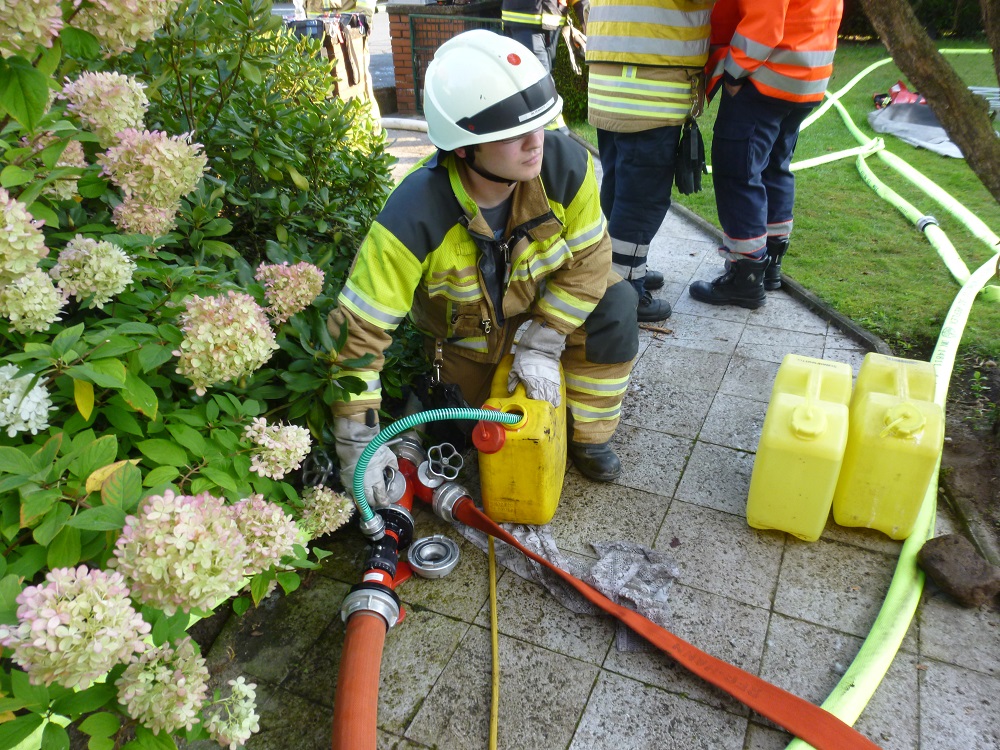 Zu einem ausgedehnten Kellerbrand sind die Ortsfeuerwehren Langenhagen, Kaltenweide sowie Krähenwinkel am Montagmorgen um 7.30 Uhr alarmiert worden. Gruppenführer Michael Schreyer traf als Erster mit dem Tanklöschfahrzeug am Einsatzort ein. Zu dem Zeitpunkt drang bereits dichter, schwarzer Qualm aus dem Keller. Gemeldet wurde das Feuer vom Hauseigentümer, der auf dem Gelände eine Elektrofirma betreibt. Die Bewohnerin des Hauses hatte das Haus verlassen, stand jedoch unter Schock und musste vom Rettungsdienst versorgt werden.