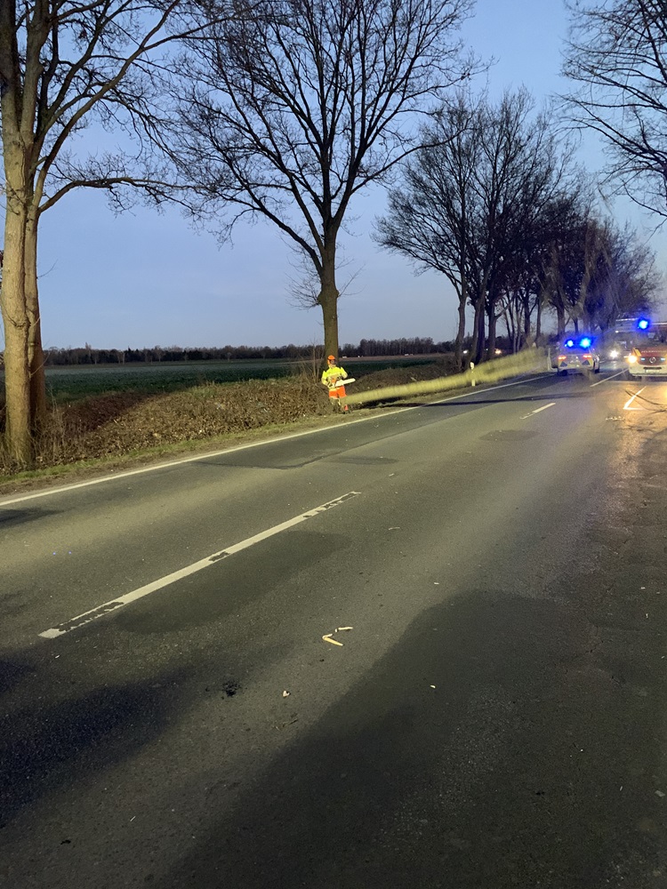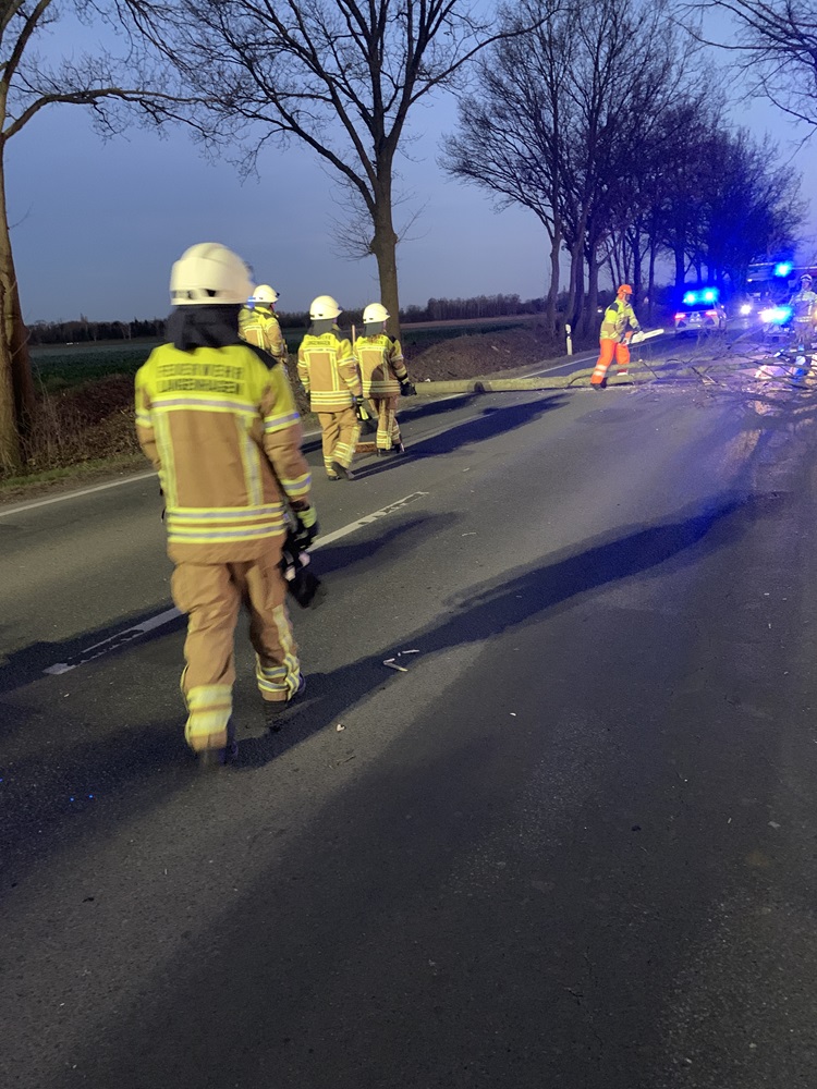 Nach Eintreffen an der Einsatzstelle und Rücksprache mit den bereits anwesenden Polizeikräften setzte Einsatzleiter L. Seidel seine Kräfte ein, um einen Baum vom Fahrbahnrand nach einem Verkehrsunfall zu entfernen.