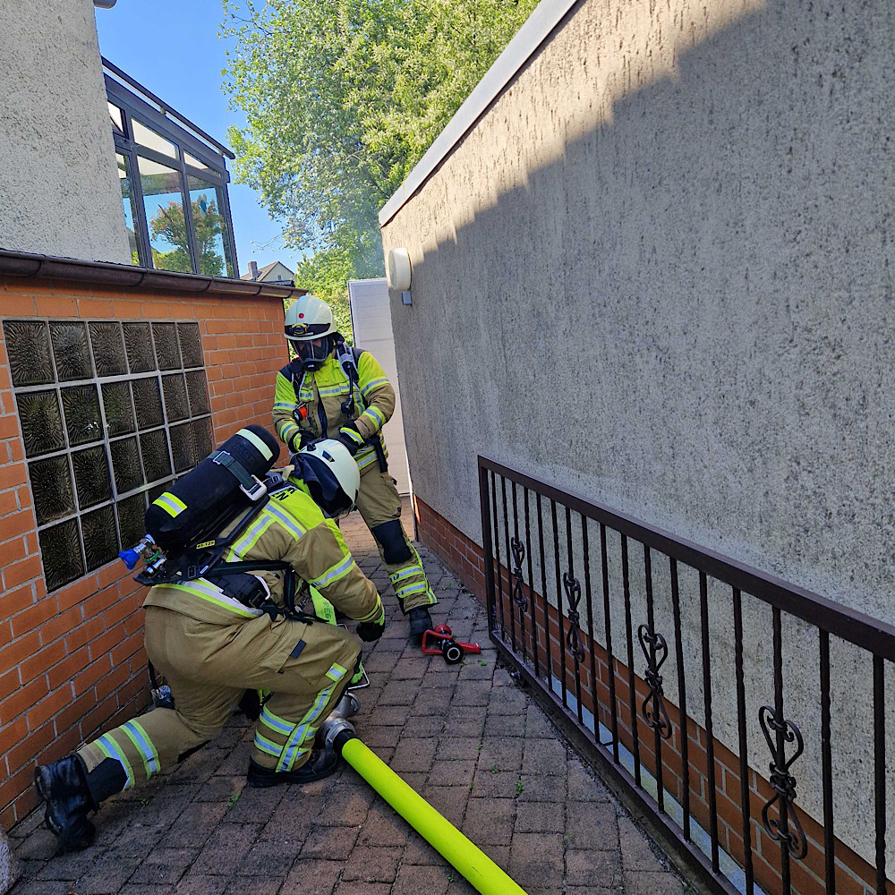 Der Besitzer bemerkte die Rauchentwicklung und Flammenschein und unternahm erste Löschversuche mittels Feuerlöscher und einem Gartenschlauch.