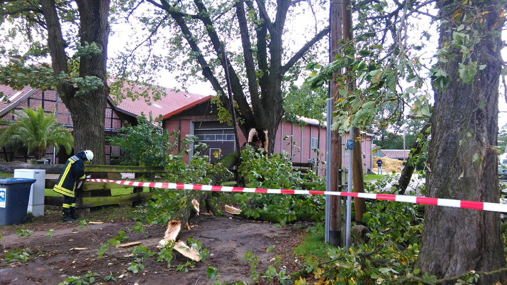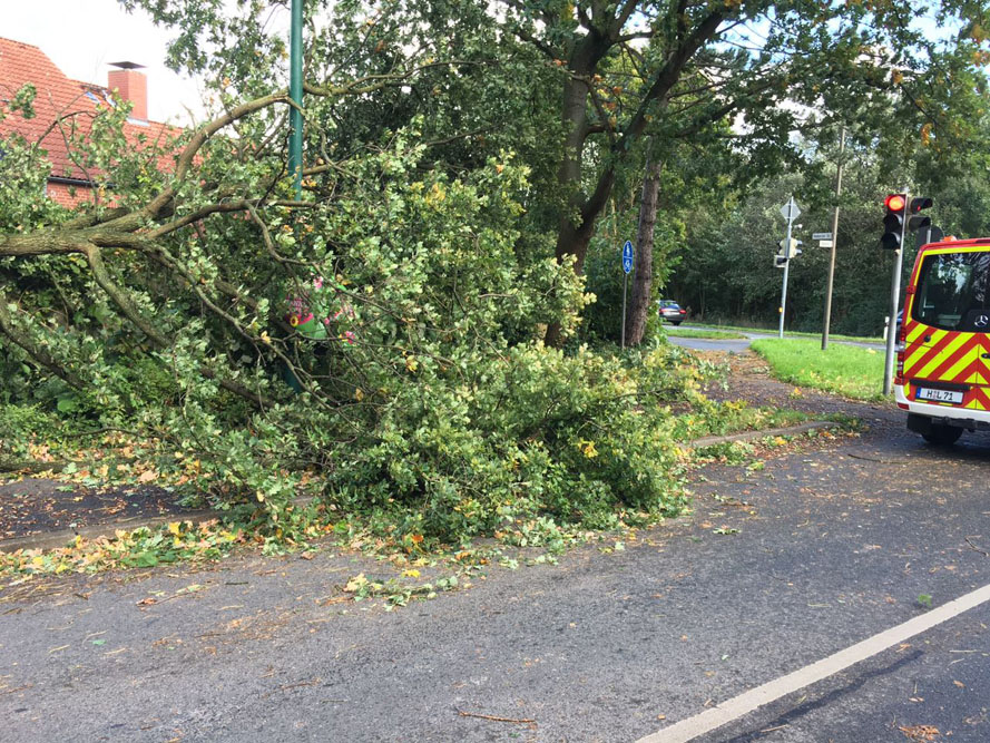 Baum auf Straße. Kein Einsatz für die Feuerwehr.
