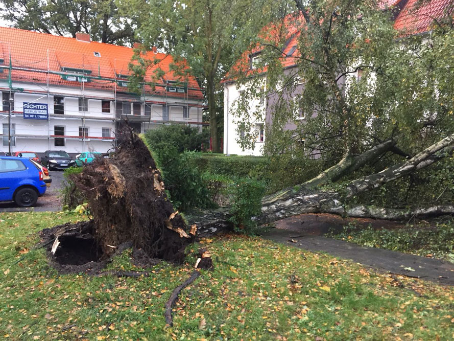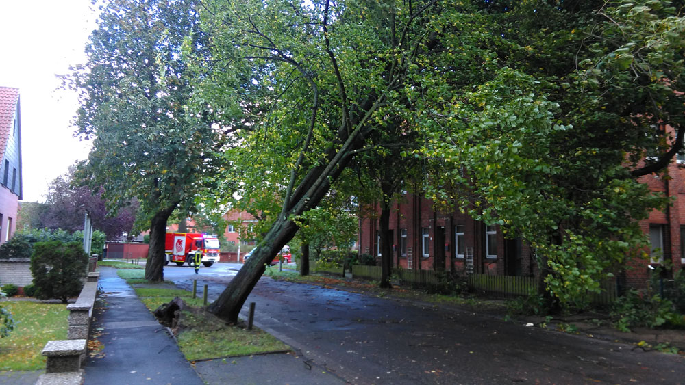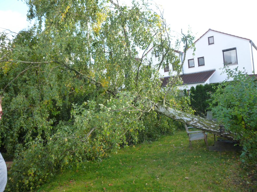 Baum droht zu kippen. Kein Einsatz für die Feuerwehr.