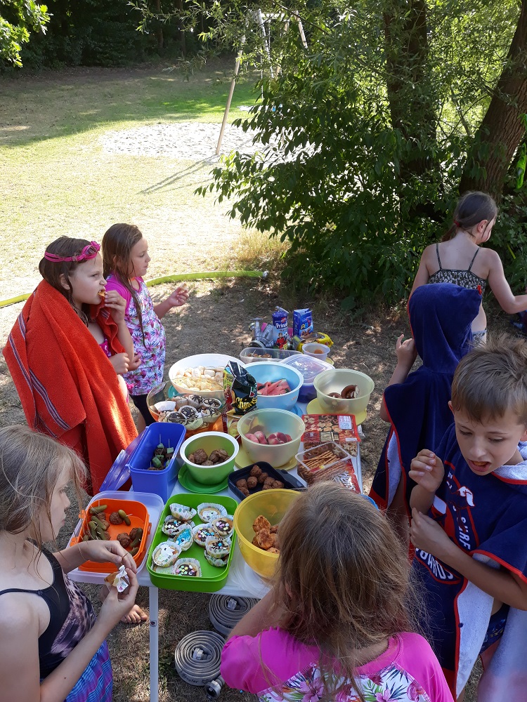 Dabei stand in erster Linie natürlich der Spaß im Vordergrund. Bei Fingerfood und Badevergnügen sollte aber auch ein wenig Feuerwehr nicht zu kurz kommen. Beim Schlauchkegeln zeigten die Kinder erfolgreich Ihren Eltern was sie bereits Alles gelernt haben und unterstützen Ihre Eltern bei der Beantwortung von Fragen "rund um die Feuerwehr".