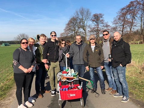 Mit einem gut gefüllten Bollerwagen ausgestattet, trafen wir uns bei frühlingshaften Temperaturen am 16.Februar um 13Uhr vor dem Schützenhaus. Von dort aus ging es zu Fuß, gemeinsam mit den anderen Teilnehmern, zu einem Startpunkt in der Feldmark.