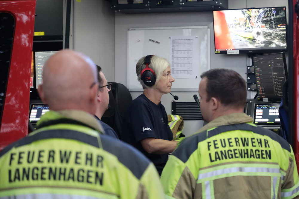 Neben der Wasserversorgung lag ein weiterer Fokus auf der Funkkommunikation und Führungsstruktur. Die Einsatzleitung koordinierte die Abschnitte, dokumentierte Lagemeldungen und steuerte den Einsatz über strukturierte Rückmeldungen und klare Aufträge.