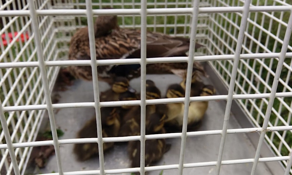 Acht Küken aus einem Kanalschacht befreit und der Entenmama wieder zugeführt
