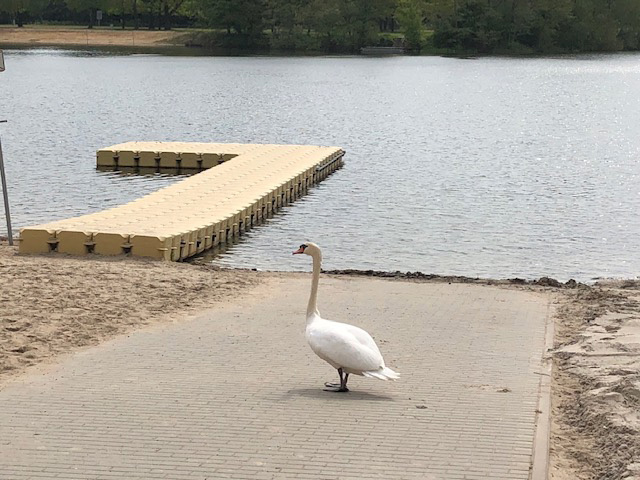 Schwan in einem Gebüsch verfangen -> Schwan befreit und im Silbersee ausgesetzt