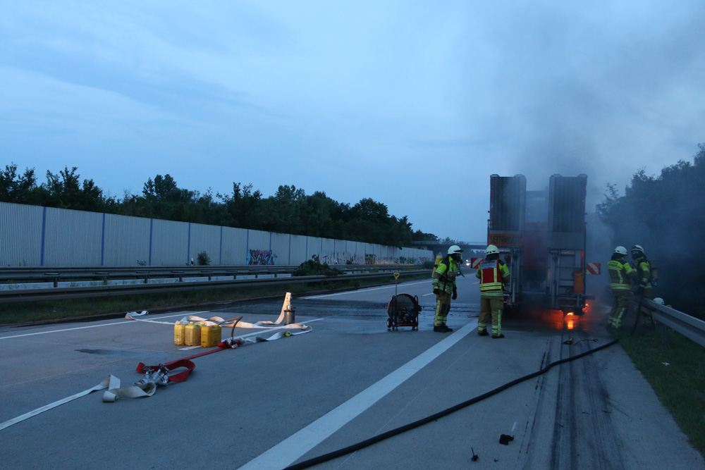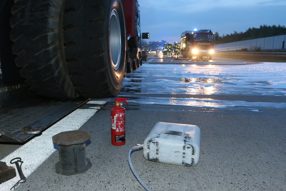 Zu einem LKW-Brand wurde am Dienstagabend die Ortsfeuerwehr Kaltenweide alarmiert. Auf der BAB 352 in Fahrtrichtung Hannover bemerkte der Fahrer eines Begleitfahrzeuges, einen gummiartigen Geruch an dem vor ihm fahrenden Sattelzug. Kurze Zeit später schlugen Funken und im Verlauf Flammen aus den Reifen des Anhängers. Der Fahrer des Absicherungsfahrzeuges stoppte daraufhin den nachfolgenden Verkehr und sicherte die Einsatzstelle ab. Durch das umsichtige Handeln hatten letztendlich die Einsatzkräfte ausreichend Aufstellfläche. Während dessen unternahm der LKW-Fahrer frustrane Löschversuche mit einem Feuerlöscher sowie einem Wasserkanister. Ebenfalls gelang es dem LKW-Fahrer rechtzeitig die Zugmaschine abzukuppeln und in Sicherheit zu bringen.