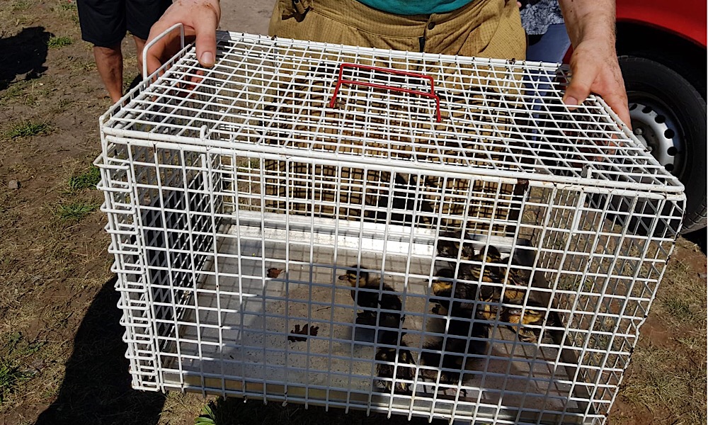 10 Entenküken waren durch ein Gitter einer Staustufe eines Kanalsystems geschlüpft und somit von ihrer Mutter getrennt -> Gitter demontiert und Küken eingesammelt; mit Mutter im Teich der Paracelsusklinik wieder ausgesetzt