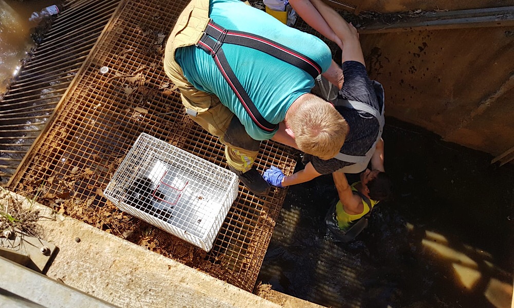 Entenküken in Kanalschacht gefangen