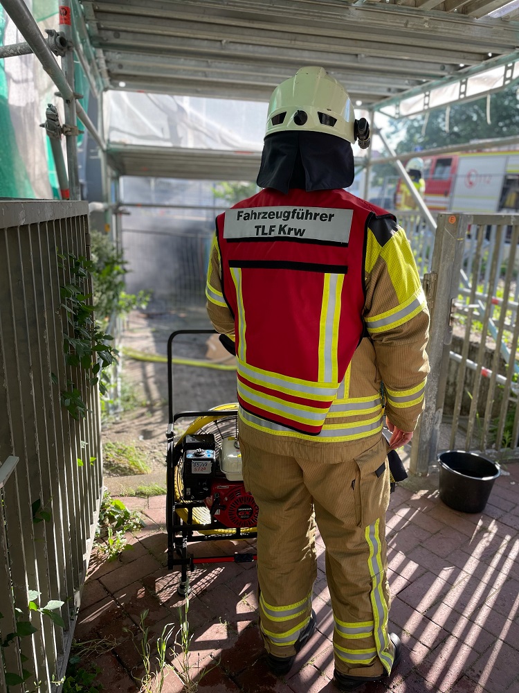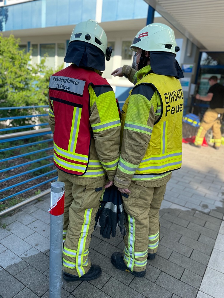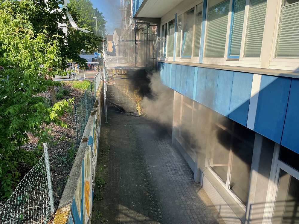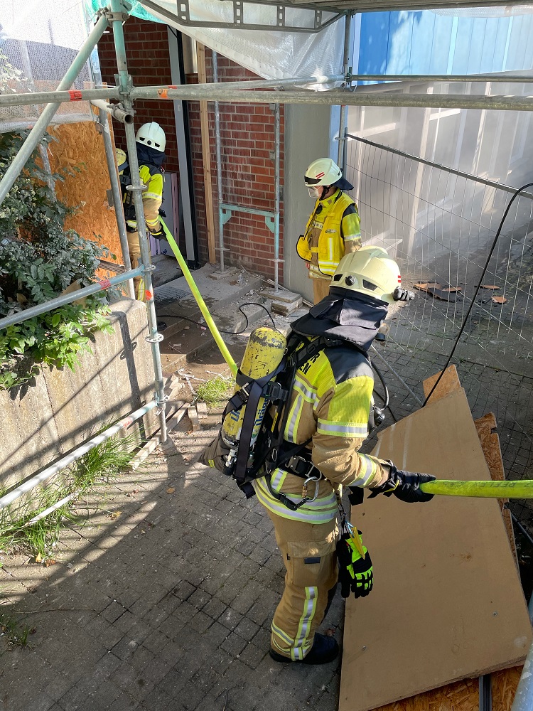 Am Donnerstagmorgen bemerkten Handwerker im Kellerbereich eines Schulkomplexes in der Rathenaustraße eine Rauchentwicklung und aktivierten umgehend den Druckknopfmelder. Es wurde Alarm für die Ortsfeuerwehr Langenhagen sowie Krähenwinkel ausgelöst. Mit vier Fahrzeugen sowie 20 Einsatzkräften war Einsatzleiter Wilhelm Rust sen. in wenigen Minuten vor Ort. Sofort ließ Rust einen Trupp unter Atemschutz mit einem Rohr über das Treppenhaus in den Keller vorgehen. Es wurde ein Rauchverschluss gesetzt, damit sich der gefährliche Qualm nicht im Gebäude ausbreiten konnte. Der Brand konnte in einem 40 qm großen Kellerraum ausgemacht werden. Ein Elektrogerät hatte aus noch unbekannten Gründen Feuer gefangen und für die starke Rauchentwicklung in dem als Aufenthaltsraum genutzten Raum sowie im Flurbereich davor gesorgt. Das Feuer griff zudem auf eine Pinnwand über. Der eingesetzte Trupp konnte den Brand schnell löschen. Weiterhin wurde ein alternativen Zugang über eine Bautür direkt in den Keller hergestellt über die auch die Druckbelüftung später durchgeführt wurde. Die Feuerwehr war gut 90 Minuten bei den sommerlichen Temperaturen im Einsatz.
